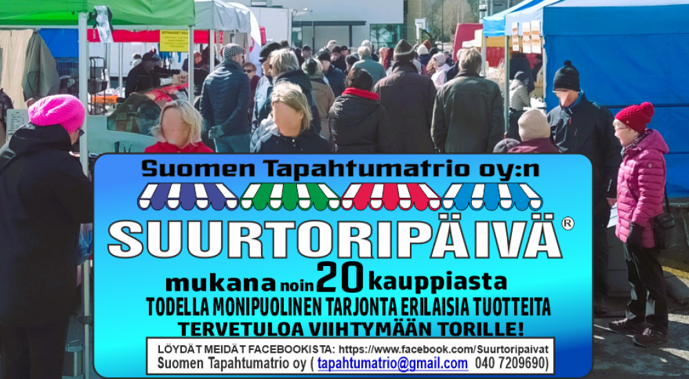 Suurtoripäivä tuo mukavaa perinteistä toritunnelmaa paikkakunnalle noin 20 kauppiaan porukalla. Tervetuloa viihtymään torille!