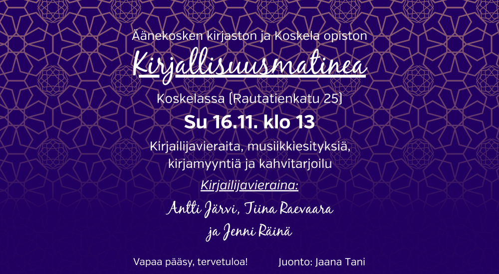 Äänekosken Kirjallisuusmatinea saapuu taas piristämään marraskuuta!