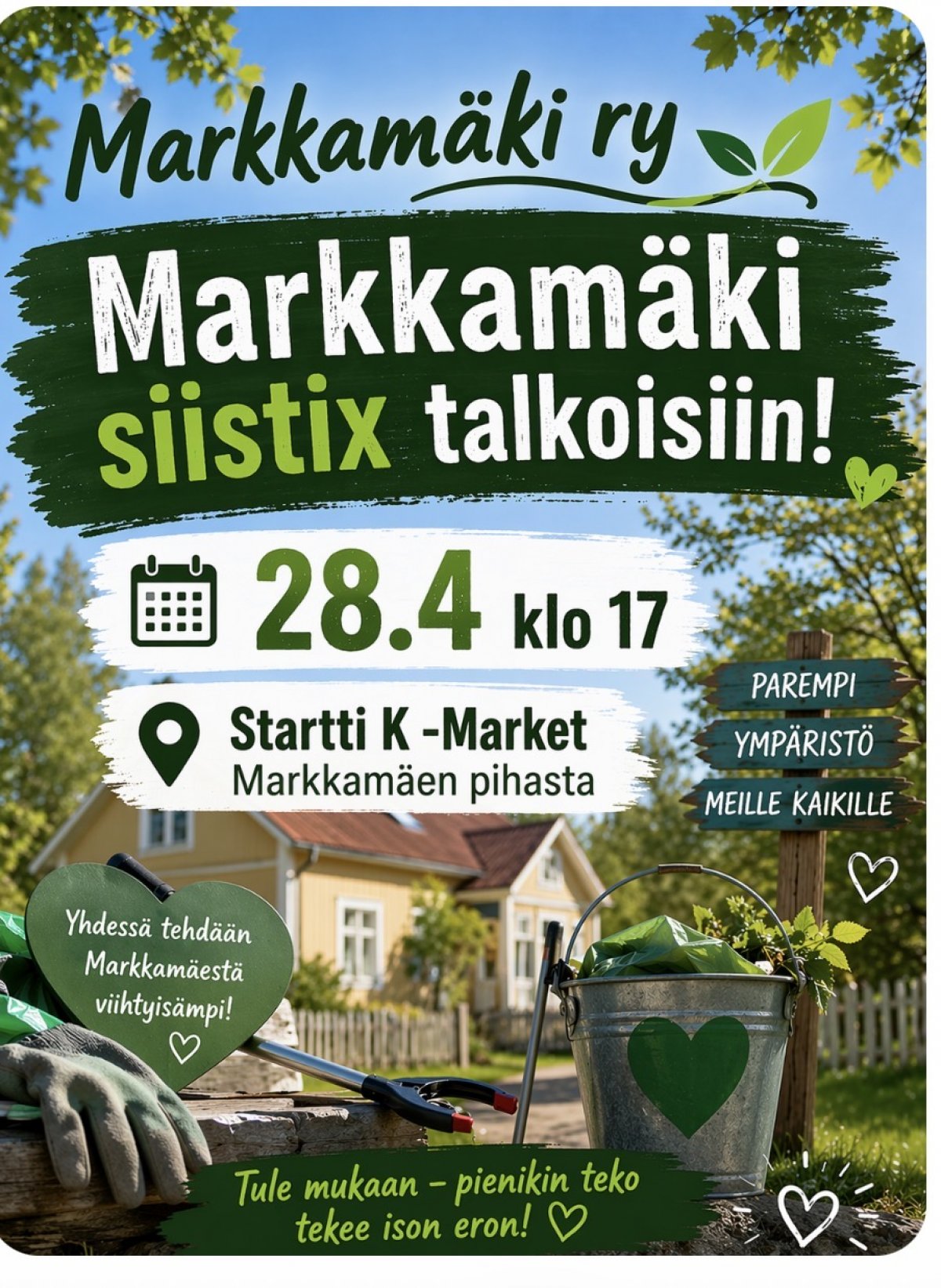 Lähdetään porukalla keräämään Markkamäen alueelta roskat pois katujen varsilta ja lisätään siten asuinalueen viihtyvyyttä